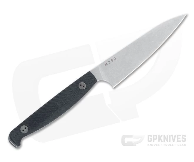Bradford Knives has brought their singular design process and refined construction into the kitchen with their Paring Knife. This paring knife offers a classic French-style cutting tool with modern materials and construction. This version comes with a stonewashed, Bohler M390 blade, micro Textured 3D black G10 handles and black oxide stainless steel hardware.