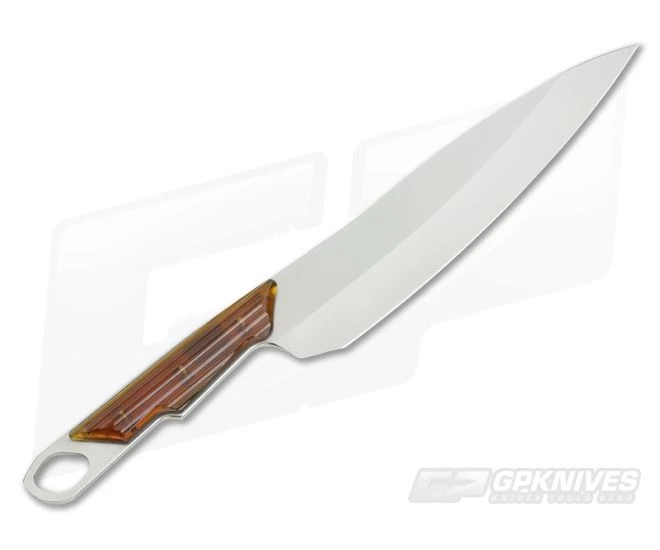 Chris Reeve Sikayo Chef’s Knife with a stonewash finished 9″ CPM-S35VN Powder Steel blade. The blade is ground on only one side for exceptional slicing abilities. The cutting edge has a curve to allow cutting with minimal pressure and to facilitate “rocking” for the dicing of vegetables and herbs. Full tang construction with Ultem1000 (heavy-duty plastic capable of withstanding extreme temperatures) handle slabs. The handle slab on the side against your palm is thicker to provide a more comfortable grip. This knife is dedicated right handed. Brand new direct from Chris Reeve Knives.