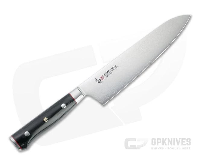 Japanese for “luxury” or “indulgence” you will find the Zanmai Classic Pro series to be just that. Premium VG10 San Mai Damascus delivers a blade that looks as good as it performs while the black Pakkawood composite handle offers a familiar natural wood feel with the added benefit of modern composite materials. For chefs of all levels or cooking enthusiasts the Zanmai Classic Pro Gyuto is a satisfying tool to the hand and the eye.