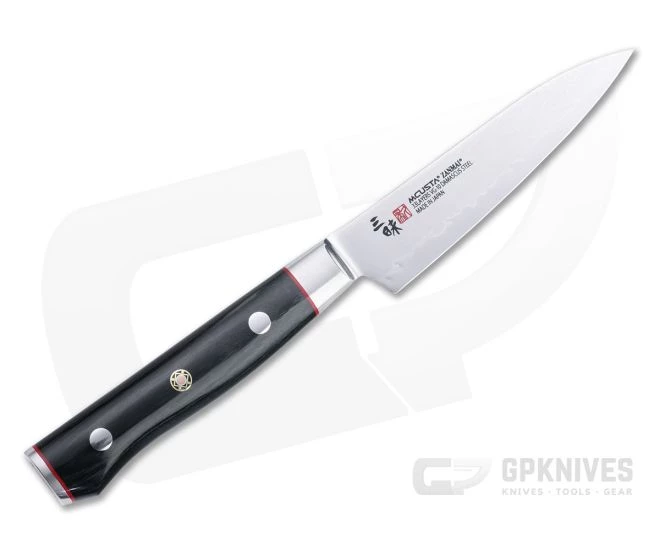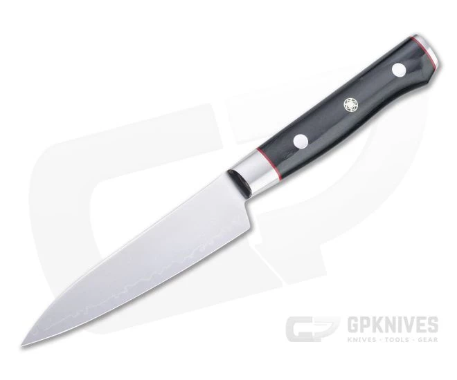 Japanese for “luxury” or “indulgence” you will find the Zanmai Classic Pro series to be just that. Premium VG10 San Mai Damascus delivers a blade that looks as good as it performs while the black Pakkawood composite handle offers a familiar natural wood feel with the added benefit of modern composite materials. For chefs of all levels or cooking enthusiasts the Zanmai Classic Pro Petty 110 mm Paring is a handy and stylish addition to your kitchen tool set.