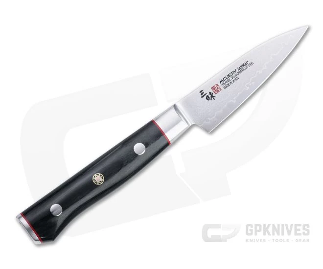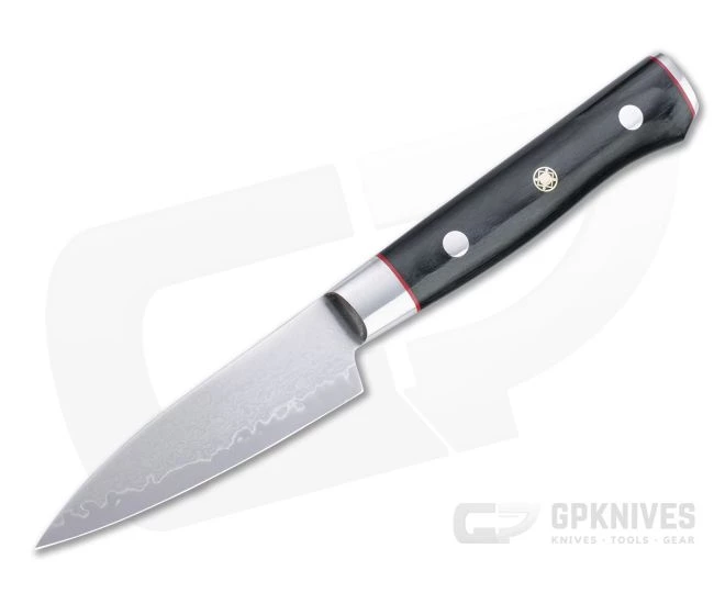 Japanese for “luxury” or “indulgence” you will find the Zanmai Classic Pro series to be just that. Premium VG10 San Mai Damascus delivers a blade that looks as good as it performs while the black Pakkawood composite handle offers a familiar natural wood feel with the added benefit of modern composite materials. For chefs of all levels or cooking enthusiasts the Zanmai Classic Pro Petty 90 mm Paring is a versatile cutting tool with superior style.