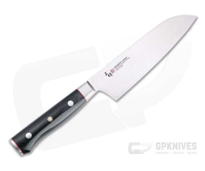 Japanese for “luxury” or “indulgence” you will find the Zanmai Classic Pro series to be just that. Premium VG10 San Mai Damascus delivers a blade that looks as good as it performs while the black Pakkawood composite handle offers a familiar natural wood feel with the added benefit of modern composite materials. For chefs of all levels or cooking enthusiasts the Zanmai Classic Pro Santoku is a capable all-purpose cutting tool with superior style.