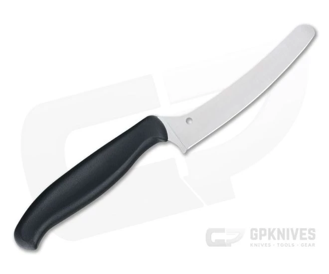 The Spyderco’s Z-Cut knife combines all the advantages of an offset design with a high performance CTS-BD1N stainless steel blade making it a multi-functional food prep powerhouse. Available with a choice of a plain-edged or fully serrated cutting edge, pointed or blunt tip and four color options, there is a Z-Cut for any purpose. This version comes with a Blunt Tip, Plain Edge and Black handle.