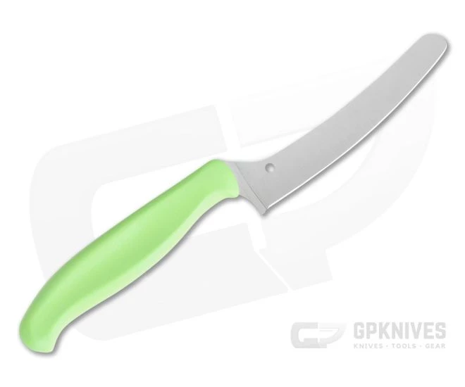 The Spyderco’s Z-Cut knife combines all the advantages of an offset design with a high performance CTS-BD1N stainless steel blade making it a multi-functional food prep powerhouse. Available with a choice of a plain-edged or fully serrated cutting edge, pointed or blunt tip and four color options, there is a Z-Cut for any purpose. This version comes with a Blunt Tip, Plain Edge and Green handle.