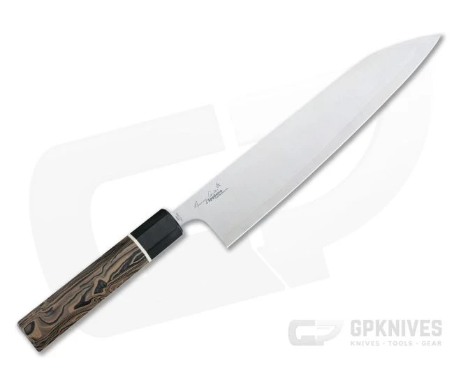 Literally meaning “in front of the cutting board,” Itamae is an extremely prestigious title reserved for highly skilled sushi chefs. Consistent with that elite status, the Carter Itamae Series is the highest tier in the Collection and proudly features premium materials and uncompromising craftsmanship. The elite Itamae Series features blades of laminated Aogami Super Blue and SUS410 and octagonal handles made from Burl G10 with black G10 ferrules.