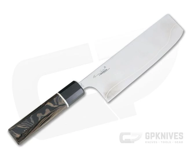 Literally meaning “in front of the cutting board,” Itamae is an extremely prestigious title reserved for highly skilled sushi chefs. Consistent with that elite status, the Carter Itamae Series is the highest tier in the Collection and proudly features premium materials and uncompromising craftsmanship. The elite Itamae Series features blades of laminated Aogami Super Blue and SUS410 and octagonal handles made from Burl G10 with black G10 ferrules.
