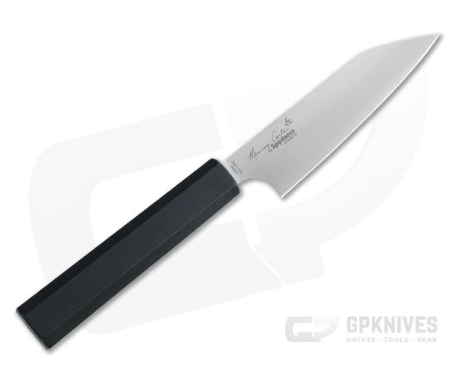 The third tier of Spyderco’s Murray Carter Collection, the apprentice series Minarai (“to look and learn”) knives come with rugged and serviceable materials ready to tackle prep work every day of the week: solid CTS-BD1N stainless steel blades and smooth, black polypropylene handles.