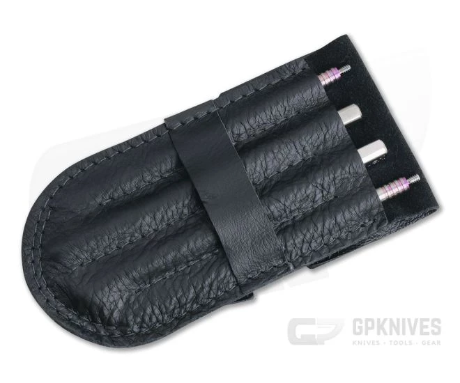 The precision machined threads make for fast and easy assembly/disassembly and they store in a finely crafted, 3″ x 6″ leather pouch.