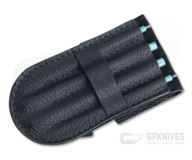 The precision machined threads make for fast and easy assembly/disassembly and they store in a finely crafted, 3″ x 6″ leather pouch.