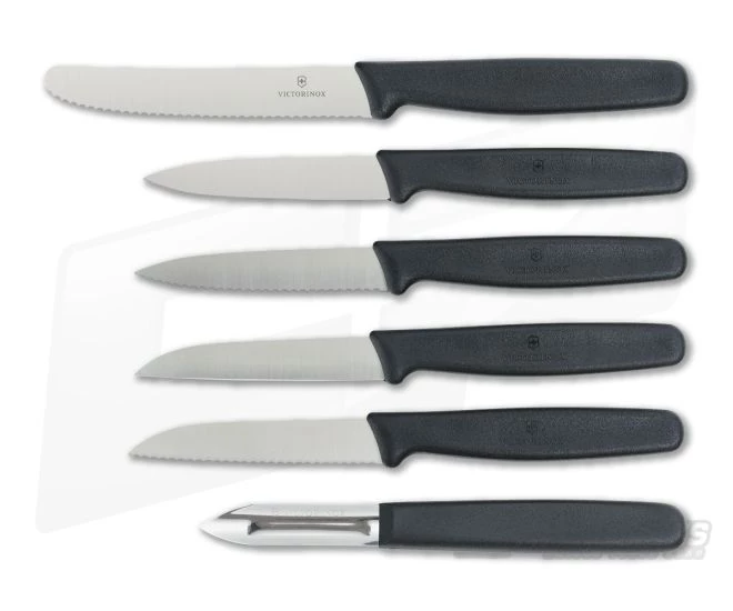 Victorinox 6-Piece Paring Set with Swiss stainless steel blades. Black nylon handles.