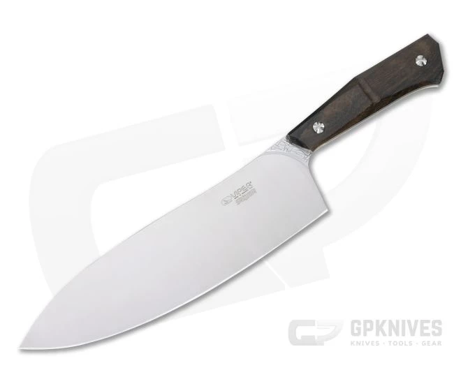 Blade: Made from Buderus Nitro B, a nitrogen stainless steel which has been both vacuum and cryogenically treated to ensure a pure, long-lasting edge. All Sakura knives are heat treated to a hardness between 58-59HRC. This chef knife has a fairly wide flat grind with a satin finish making it the perfect choice for many large kitchen tasks.